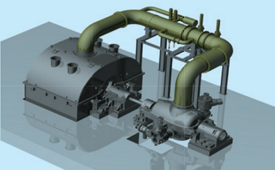支持低位布置——由于该机型低压缸为轴向排汽,从而凝汽器与汽机低压缸轴向连接,可使机组整体轴系标高降低,实现低位布置。
