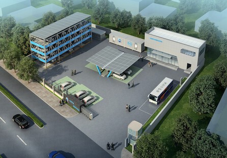 该项目位于上海市军工路2670号,充电站采用整车充电方式,占地面积1536平方米,为拥有1111kW(二期480kW)充电能力的直流、交流充电站