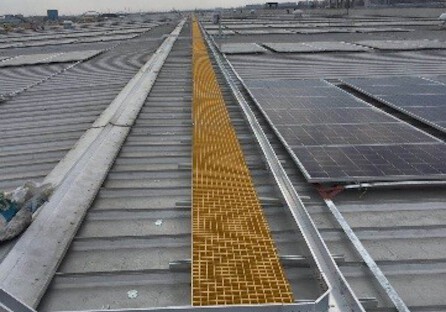 施工过程中组件吊装采用汽车吊的方式将屋顶设备全部吊装至指定位置,所有屋顶设备的吊装至屋顶的同时采用人工将所有设备材料分布至屋顶,高低压电缆路线采用顶管方式沟通,省去破路的影响。