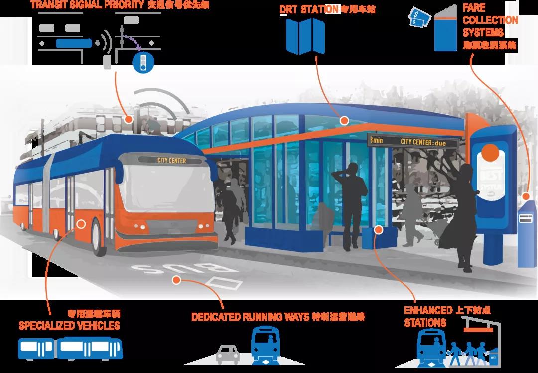 与低运量的地面公交系统(常规公交系统)比较,该系统的客运能力达到0.8~1.5万人次/小时,平均运行速度为20~25公里/时,与有轨电车的运载能力基本相当,具有运能高、舒适性好、可靠性高的特点。