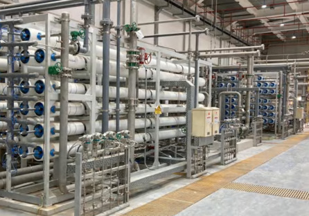 迪拜光热除盐水系统满足了电厂机组工业、消防、生活水等用水需要;设置冷冻机换热系统,在夏季原水温度高于35℃的情况下,仍能保证了反渗透进水温度的稳定。