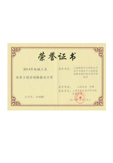 2014年机械工业优秀工程咨询勘查设计奖 工程设计壹等