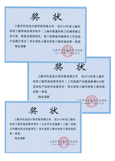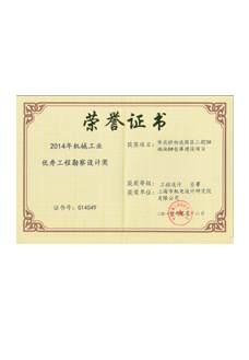 2014年机械工业优秀工程勘察设计奖 工程设计壹等奖