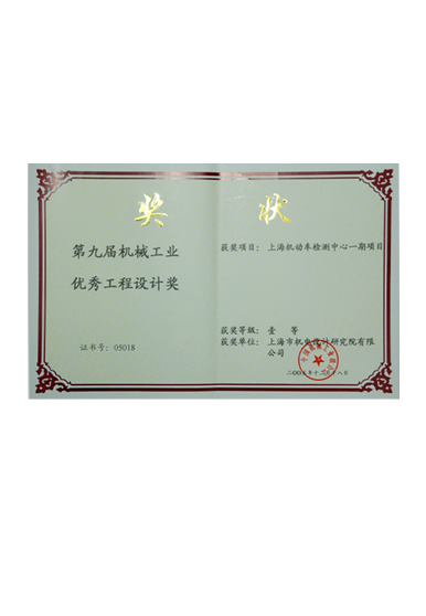 2009年机械工业优秀工程咨询勘查设计壹等奖