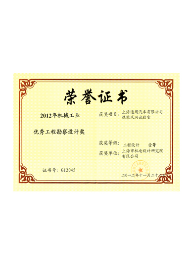 2012年机械工业优秀工程咨询勘查设计贰等奖