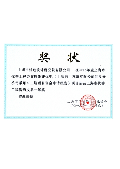 2012年机械工业优秀工程咨询勘查设计壹等奖