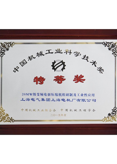 2015年获得中国机械工业科学技术奖特等奖