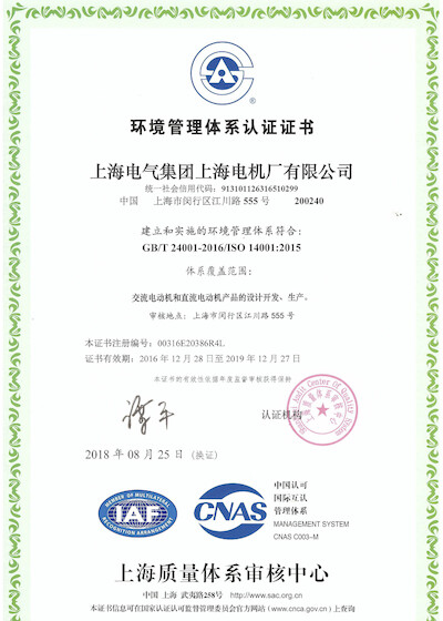 具有ISO 14001:2015环境管理体系认证证书