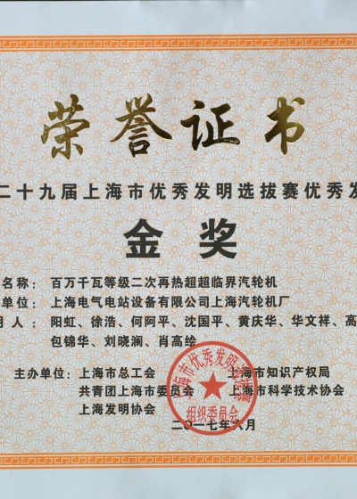 29届优秀发明选拔赛金奖--百万等级二次再热机组