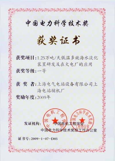 2009年度中国电力科学技术奖一等奖