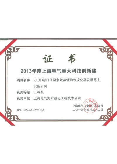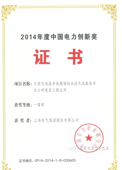 2014年度中国电力创新奖一等奖