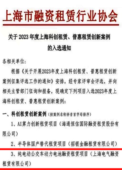 电气租赁入选“2023年度上海科创租赁创新案例”