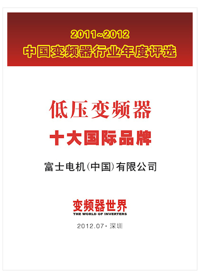 2011-2012年 中国变频器行业 低压变频器 十大国际品牌