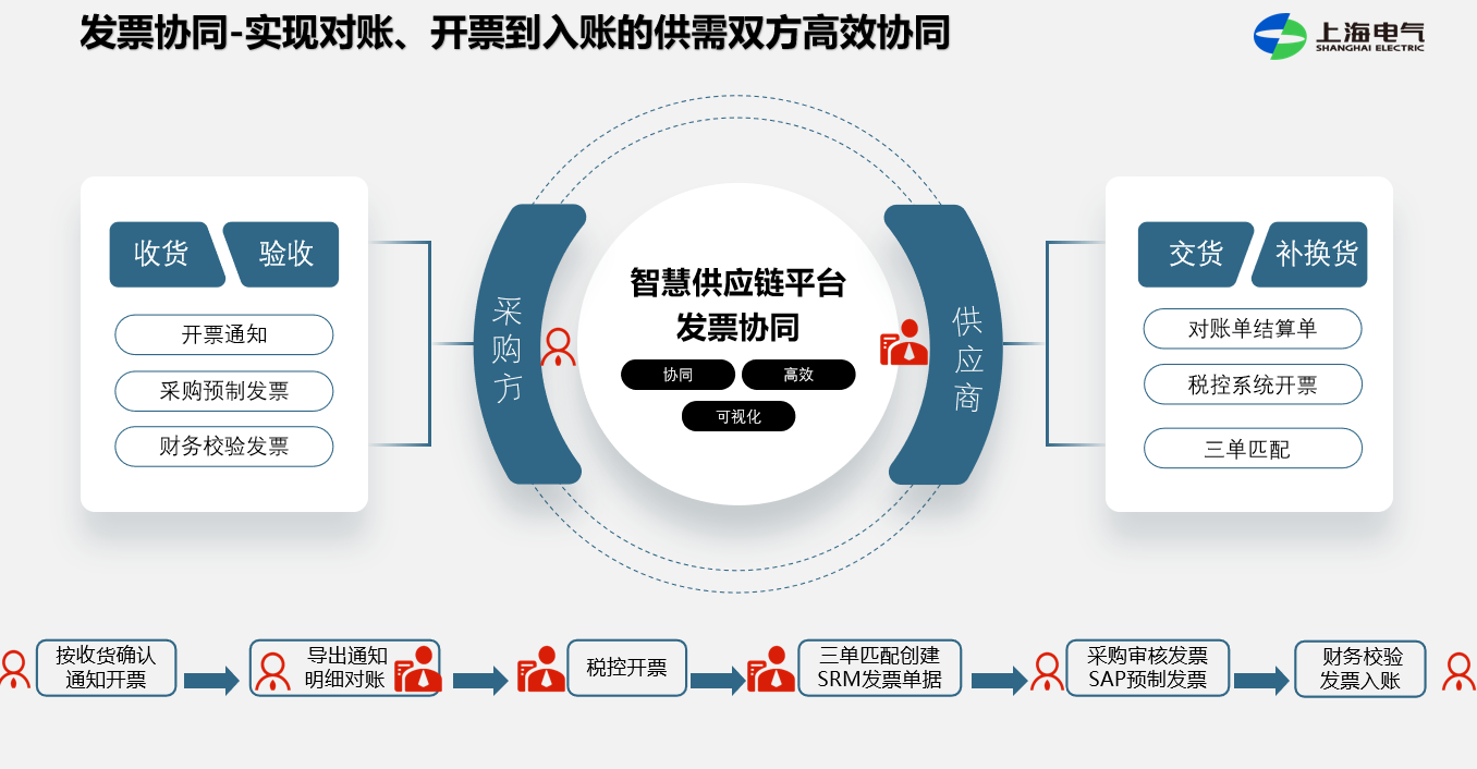 为了满足sunbet申搏官方网站电站设备有限公司上海发电机厂日益增长的业务需求,实现供应商基于采购方的收货确认单据进行开票,对发票结算业务进行事前计划、事中控制和纠错,减少核对业务数据的工作量、减少退票信息,结算过程透明化的核心目标,“商和”平台为上发厂打造结算协同平台,主要建设内容为:双方在线对账、供方按三单匹配原则开具发票,发票审核、发票预制和发票校验入账等业务活动。结算协同系统的应用,大大降低了采供双方的沟通效率和开票成本,也为集团内其他企业的供应链管理数字化转型提供了宝贵的参考方案。