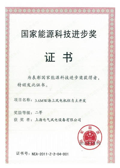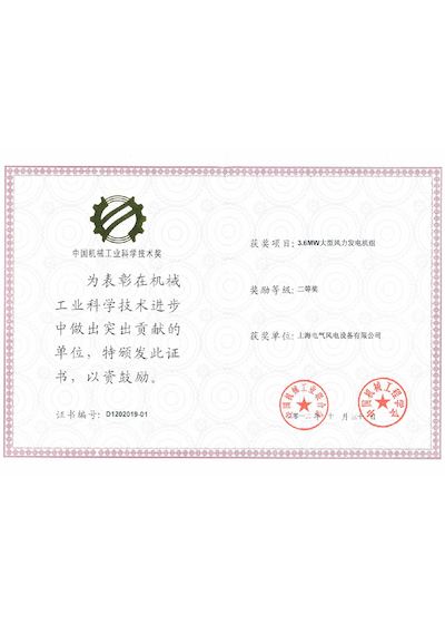 中国机械工业科学技术二等奖-3.6MW