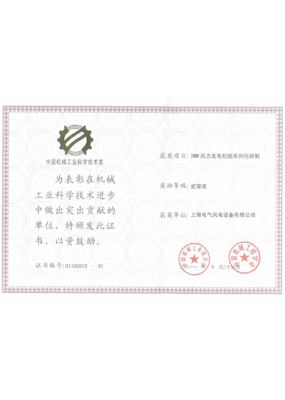 中国机械工业科学技术二等奖-2MW