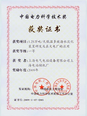The first prize of Chinese Electric Power Science and Technology Award in 2009