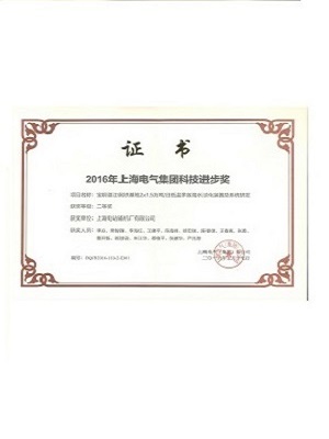 2nd Prize of Shanghai Electric Science and Technology Progress Award in 2016