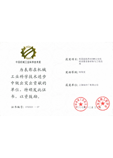 China Machinery Industry Science and Technology Award – Special Award (2007)
