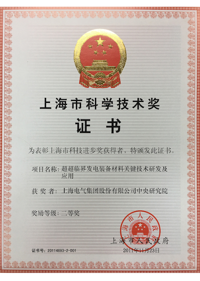 Shanghai Science and Technology Progress Award 2011年-“超超临界发电装备材料关键技术研发及应用”-上海市科学技术奖 二等奖
