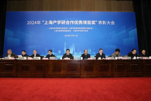 12月11日,2024年“上海产学研合作优秀项目奖”表彰大会在上海市政协召开,市政协主席胡文容出席并为获奖单位代表颁奖。