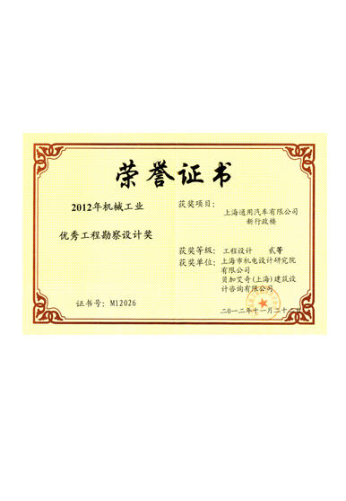 2012年机械工业优秀工程咨询勘查设计贰等奖