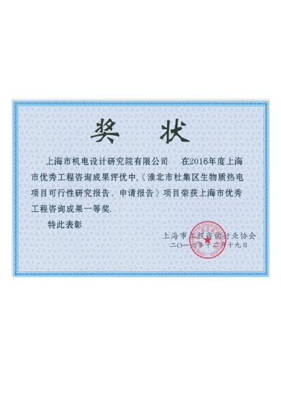 2012年机械工业优秀工程咨询勘查设计壹等奖