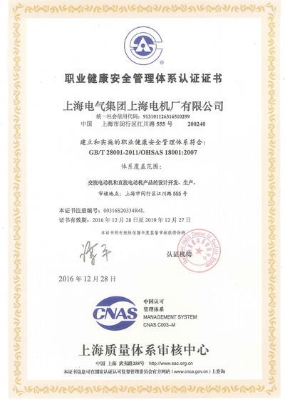 持有职业健康安全管理体系认证证书