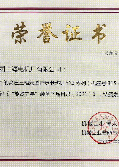 2023年 YX3.0系列电机列入“能效之星装备名录”