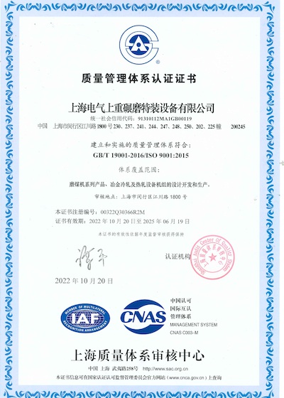 上重碾磨质量管理体系证书 ISO 9001
