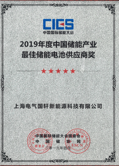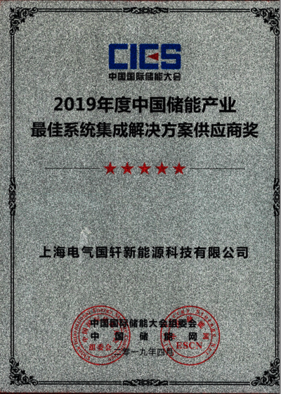 2019年度中国储能产业最佳系统集成解决方案供应商