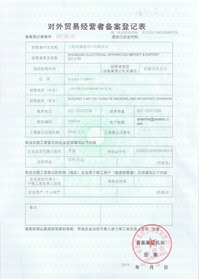 SHANGHAI ELECTRICAL APPARATUS IMP. & EXP. CO. LTD.