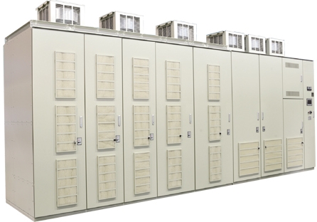 It adopts international advanced multi-level technology to achieve high efficiency and reliable performance. This high voltage inverter is characterized by compact structure, space saving, stable and clean power supply thus protecting the motor from stress damage, high efficiency and high power factor, high reliability, significant energy saving effect, convenient for maintenance and others. For variable speed control of loads characterized by square decreasing torque such as pumps and fans, it can greatly improve the energy saving efficiency.
