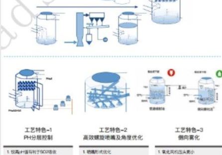Install the grading ring at the inlet of absorption tower to make the smoke flow field more uniform, adopt the spray layer control technology and the high-performance low-power consumption spiral nozzle with three cutting directions, 100-degree coverage, and particle diameter less than 1000μm to strengthen the gas-liquid mass transfer, and finally achieve more than 99.5% desulfurization efficiency and more than 75% synergistic dust removal efficiency after repeated defogging.