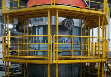 Compressor consists of compressor pressure shell, inlet expansion joint, compressor baffle and electric device, volute, impeller, drive motor, electromagnetic bearing system, auxiliary impeller, electrical penetration, cooling system, power supply cabinet, high-voltage frequency converter and instrument cabinet and other components.