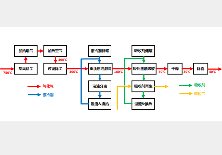 To orderly remove the three major pollutants, fly ash, tar and water, in biomass gasification fuel-gas,we developed the synergistic removal process of fly ash and tar based on the dry-wet combination technology, as well as the deep purification of multi-stage tar removal based on dew point control theory. A new absorbent with high regeneration efficiency is developed and used to remove different kinds of tar sequentially according to reasonable control of dew point temperature. Modular desulfurization and dechlorination can be employed to meet specific requirements for pollutants.