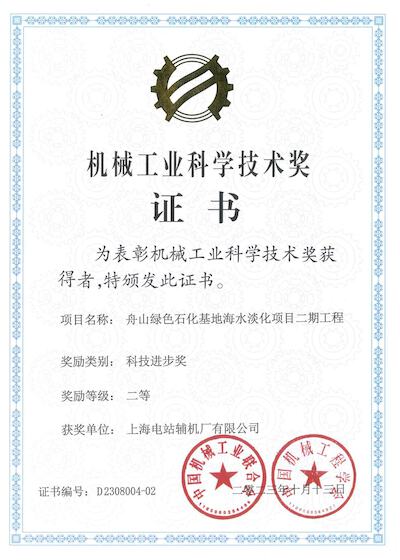 3rd Prize of Outstanding Contribution Award for Science and Technology Innovation of Shanghai Electric Group in 2022