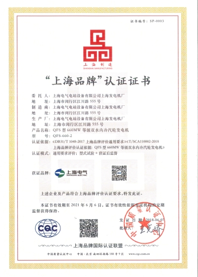 Certificate of shanghai brand in 2018 (2)