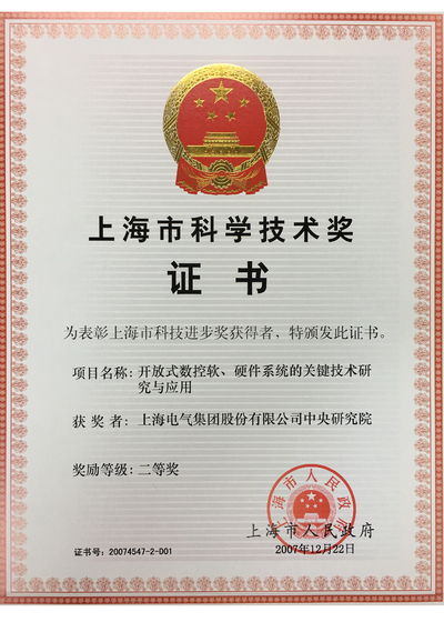 Shanghai Science and Technology Progress Award 2007年-“开放式数控软、硬件系统的关键技术研究与应用-上海市科学技术奖 二等奖