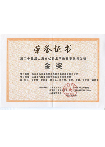 Gold Award by the 24nd Shanghai Outstanding Invention Competition. 2013年-第二十五届上海市优秀发明选拔赛优秀发明金奖1