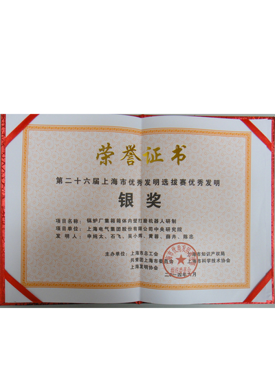 Silver Award by the 26nd Shanghai Outstanding Invention Competition 2014年-“第二十六届上海市优秀发明选拔赛优秀发明”银奖1